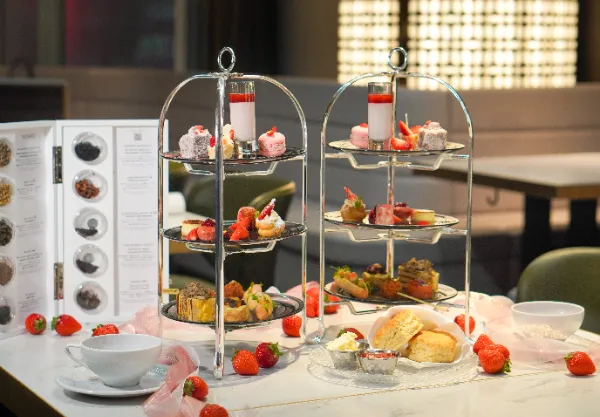Available from February 1 to March 15, this limited-time experience features delicately crafted strawberry-inspired sweets and sophisticated savoury bites, offering a moment of quiet indulgence high above the city.